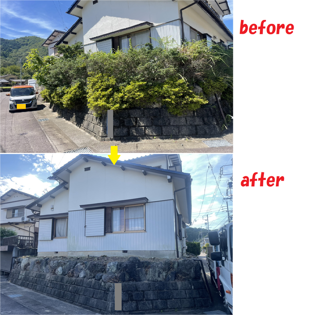 家の周りを草木で覆われてましたが、全て取り除きスッキリしました。